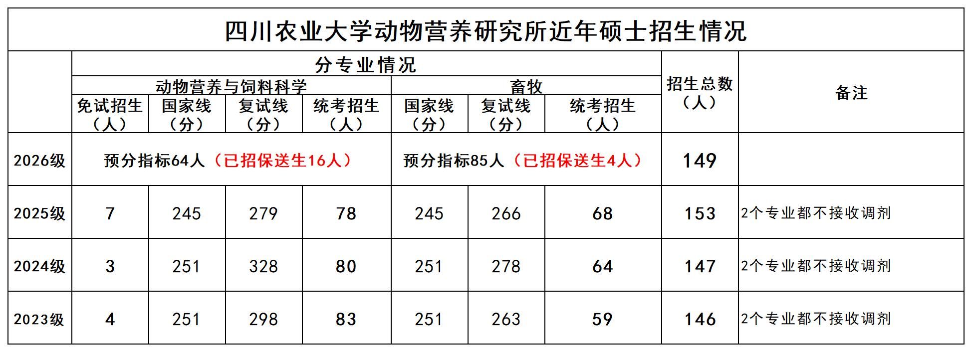 四川农业大学动物营养研究所近年硕士招生情况(2023-2026年)