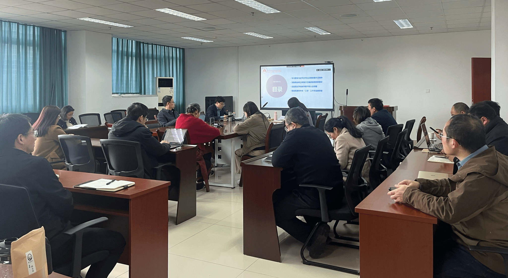 3月3日下午,营养所召开教职工政治理论学习暨新学期教职工大会,深入开展政治理论学习,全面贯彻习近平总书记近期重要讲话精神、党中央各项决策部署及学校新学期干部大会精神,研究部署全所新学期重点工作,全体教职工参加会议。