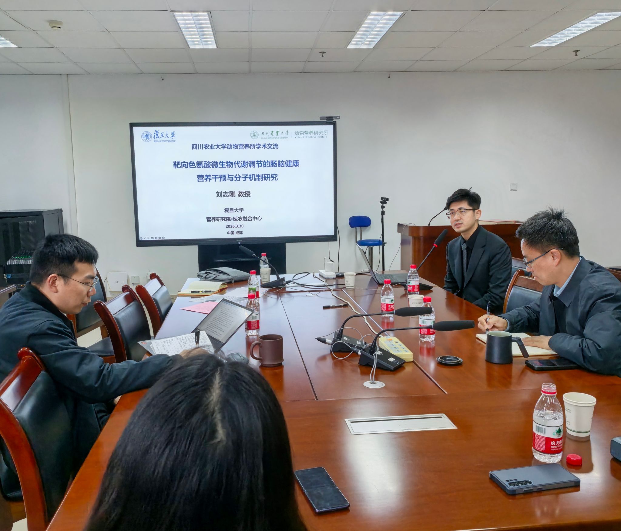 3月30日下午,由我所举办的第四期“动物营养与人类健康”天府论坛(第四期)在四川农业大学成都校区7教12楼会议室再次召开。“长江学者奖励计划”青年学者、德国“洪堡学者”、复旦大学刘志刚教授应邀到我所分享了“通过色氨酸靶向调节微生物代谢进而影响肠脑健康”的研究报告。会议还邀请到哥本哈根大学生命科学院教授及NEORESEARCH中心主任Per T. Sangild教授做学术分享。