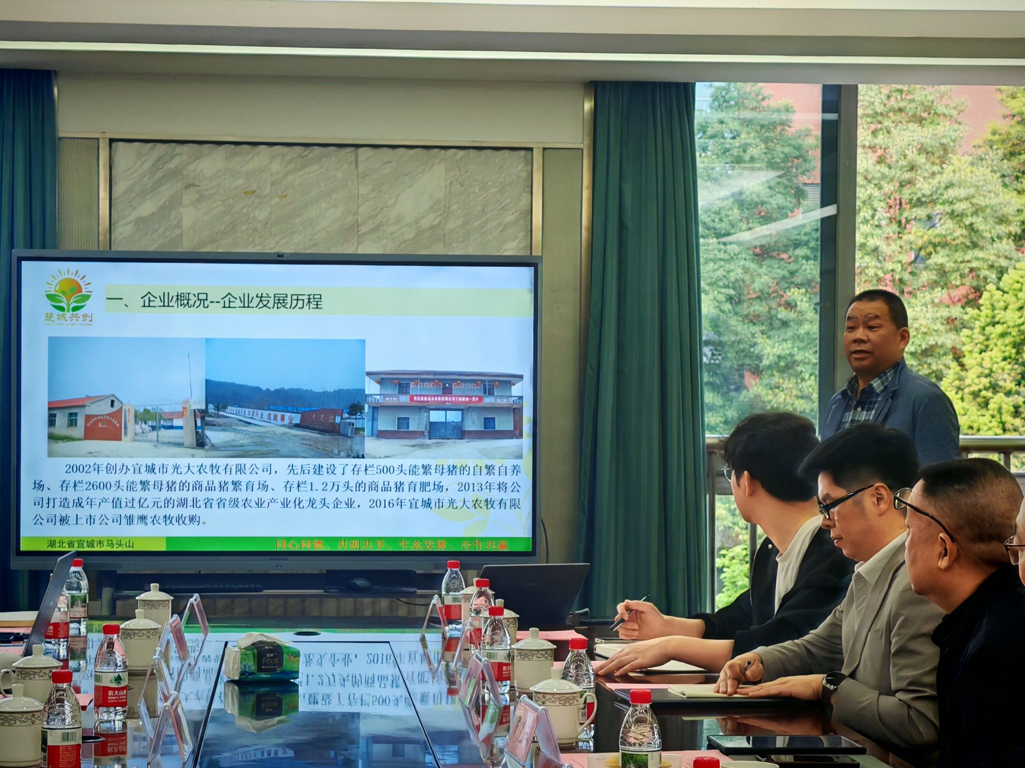交流环节中,行业专家与企业代表围绕液态饲喂技术的科研突破、产业应用、未来布局展开深入探讨。湖北楚城共创农业有限公司总经理谢远刚阐述了企业发展历程与战略规划,董事长罗光山结合行业发展实际,分享了液态饲喂技术在实践中的应用经验,并表达了与科研院所深化产学研合作、实现互利共赢的迫切意愿。