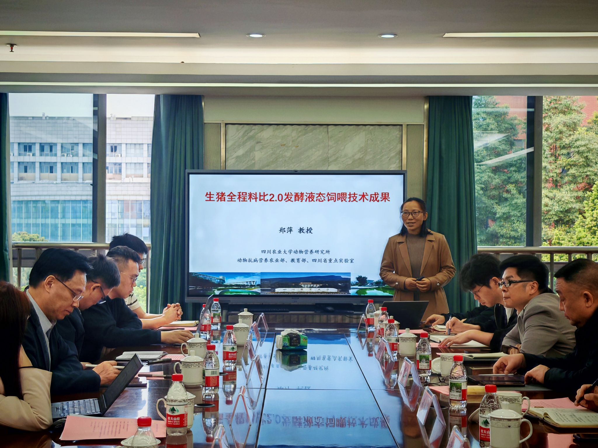 4月8日,由动物营养研究所主办的“液态饲喂应用技术交流会”在成都校区成功召开。本次会议以“聚焦液态饲喂技术创新,推动产学研用协同发展”为核心,汇聚行业专家学者与企业代表,共商液态饲喂技术科研转化与产业应用路径,为畜牧产业高质量发展注入新动能。湖北楚城共创农业有限公司董事长罗光山、总经理谢远刚,河南和顺自动化设备有限公司董事长刘忠臣,深圳市数牧科技有限公司技术总监徐生祥等企业代表与畜牧学科带头人陈代文教授、动物营养研究所所长车炼强教授,猪营养与饲料研究室余冰、虞洁、郑萍教授等共聚一堂,深入探讨液态饲喂领域的技术创新与合作前景。会议由虞洁教授主持。
