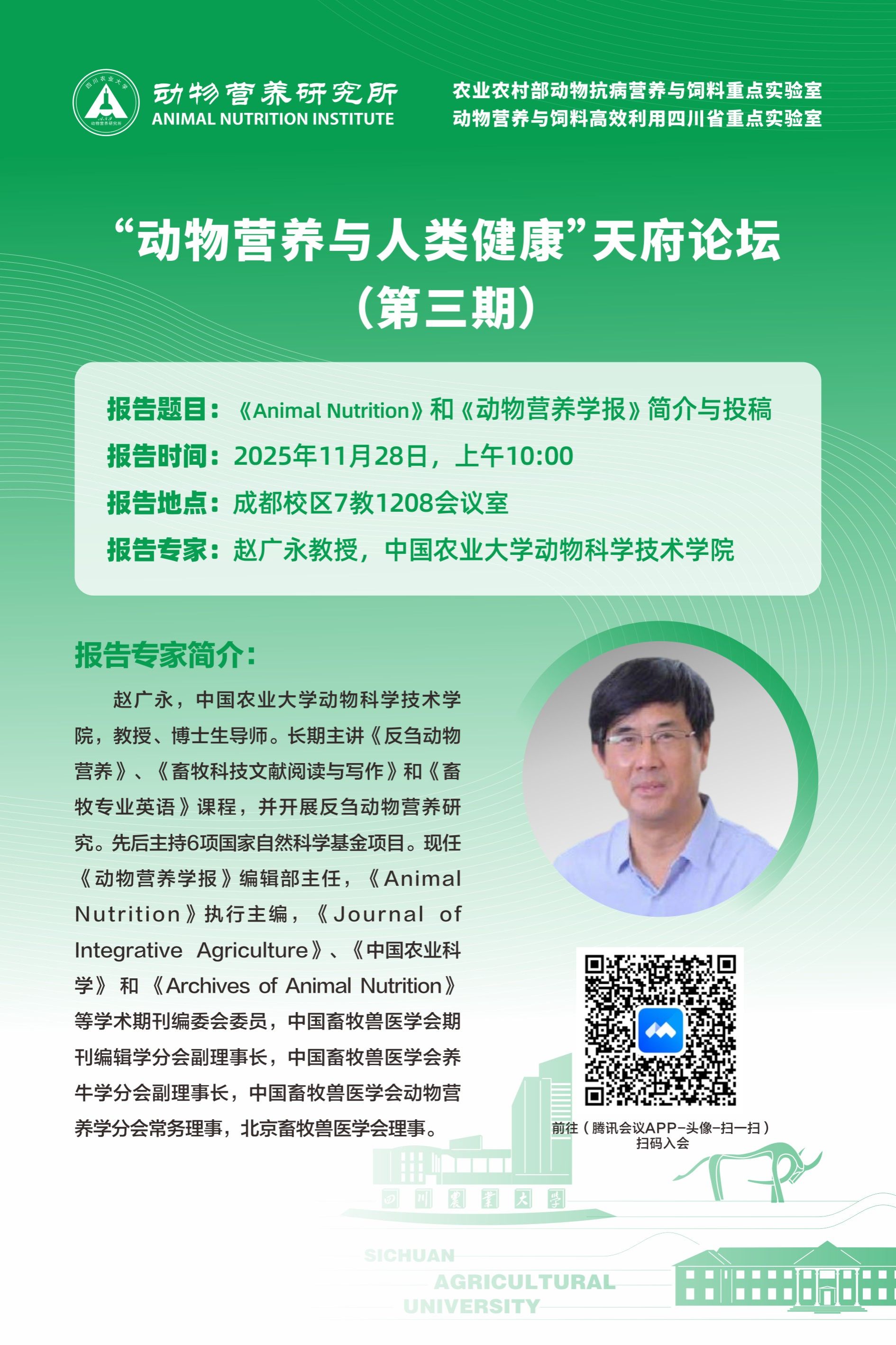 【学术报告】“动物营养与人类健康”天府论坛第三期:《Animal Nutrition》和《动物营养学报》简介与投稿